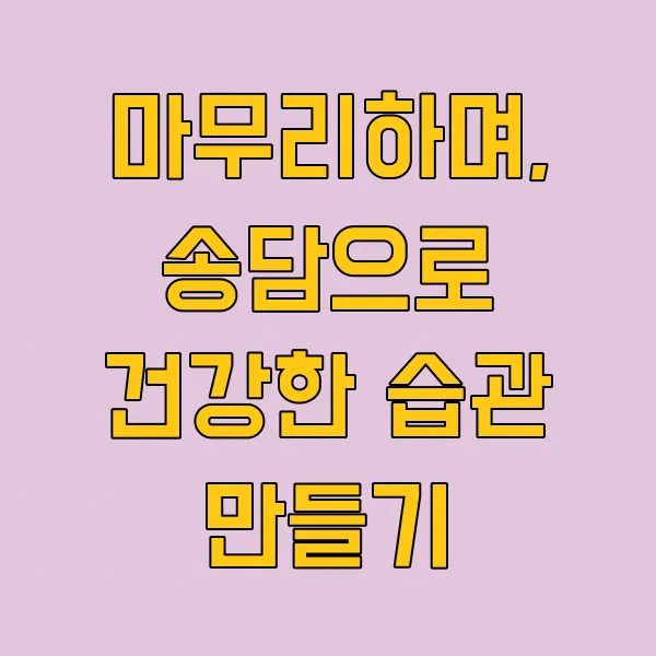하지만 잊지 말아야 할 것은, 송담 효능을 제대로 보려면 꾸준함 이 정말 중요하다는 거예요. 하루아침에 모든 것이 달라지는 마법 같은 일은 없답니다. 오늘부터라도 송담을 꾸준히 챙겨 드시면서 건강한 습관을 만들어나가시면, 분명 몸과 마음이 더욱 튼튼해지고 활력을 되찾으시는 것을 느끼실 수 있을 거예요!