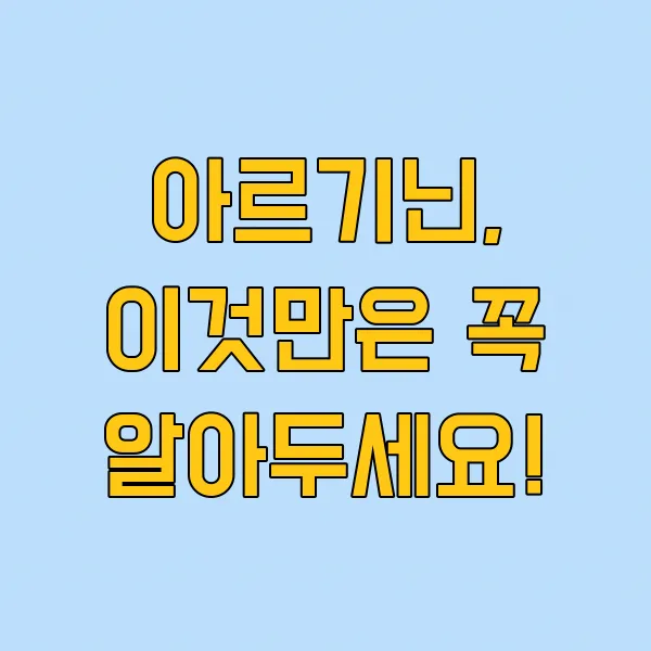 아르기닌, 똑똑하게 섭취하면 우리 몸에 정말 많은 도움을 줄 수 있는 성분이에요. 하지만 뭐든 지나치면 좋지 않은 법! 오늘 제가 알려드린 부작용과 주의사항들을 잘 기억하셔서, 안전하고 효과적으로 아르기닌을 섭취하시길 바라요. 여러분의 건강한 라이프스타일을 응원합니다! 💪